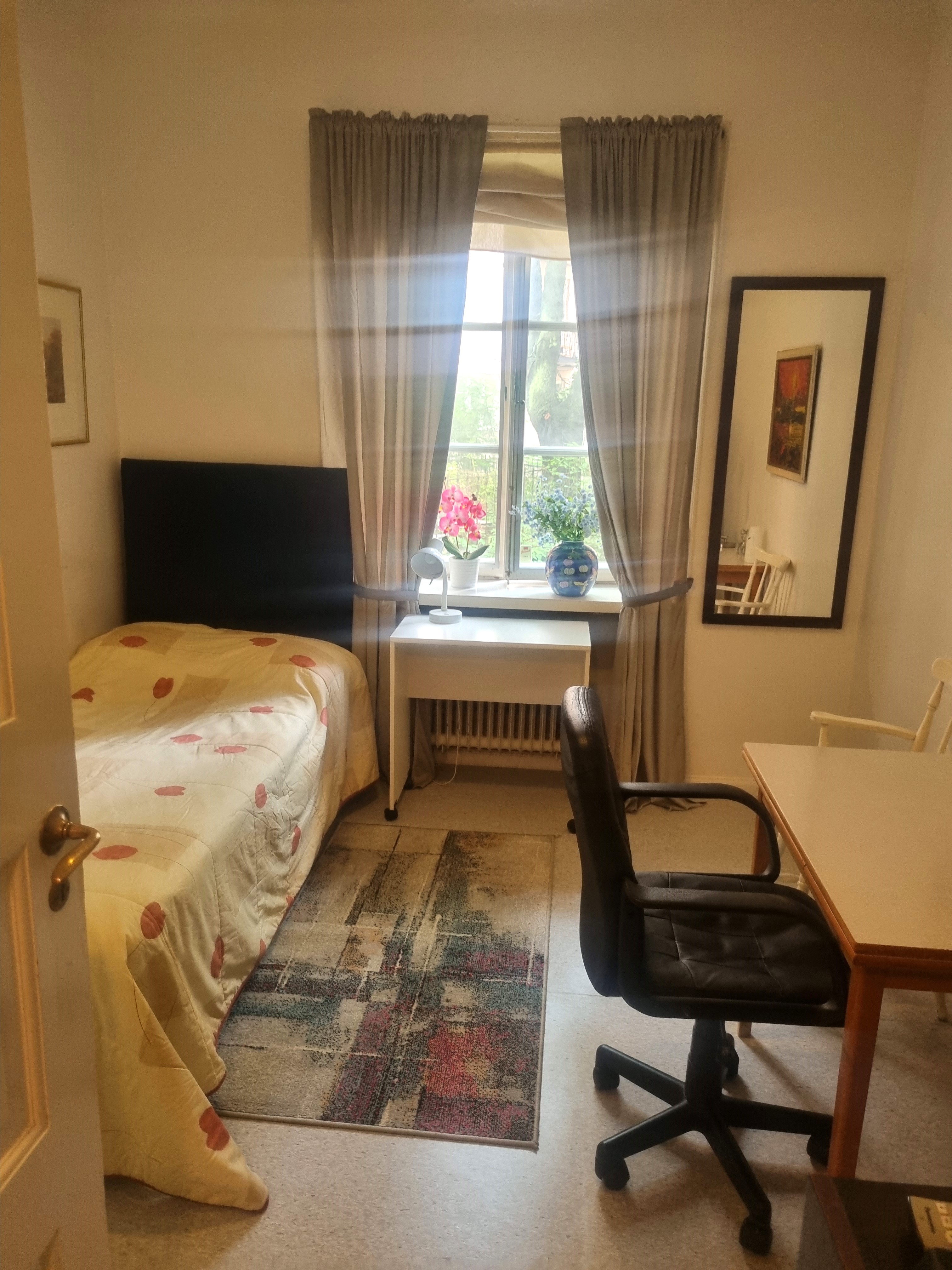 Hej, Jag hyr ut ett rum i en stor lägenhet vid S:t Eriksplan(Birkastan). Jag bor också i lägenheten vilket innebär att du har tillgång till kök, bad/toa och tvättstuga i huset. Rummet är möblerat. Wifi och el ingår i hyran som är 6.500kr/mån. En månadshyra som deposition. En månad ömsesidig uppsägning. Det är rökfritt och djurfritt inomhus. Lägenheten lägger nära T-bana, bussar och flygbussar. Rummet är ledig nu. Skicka ett meddelande om du är intresserad.