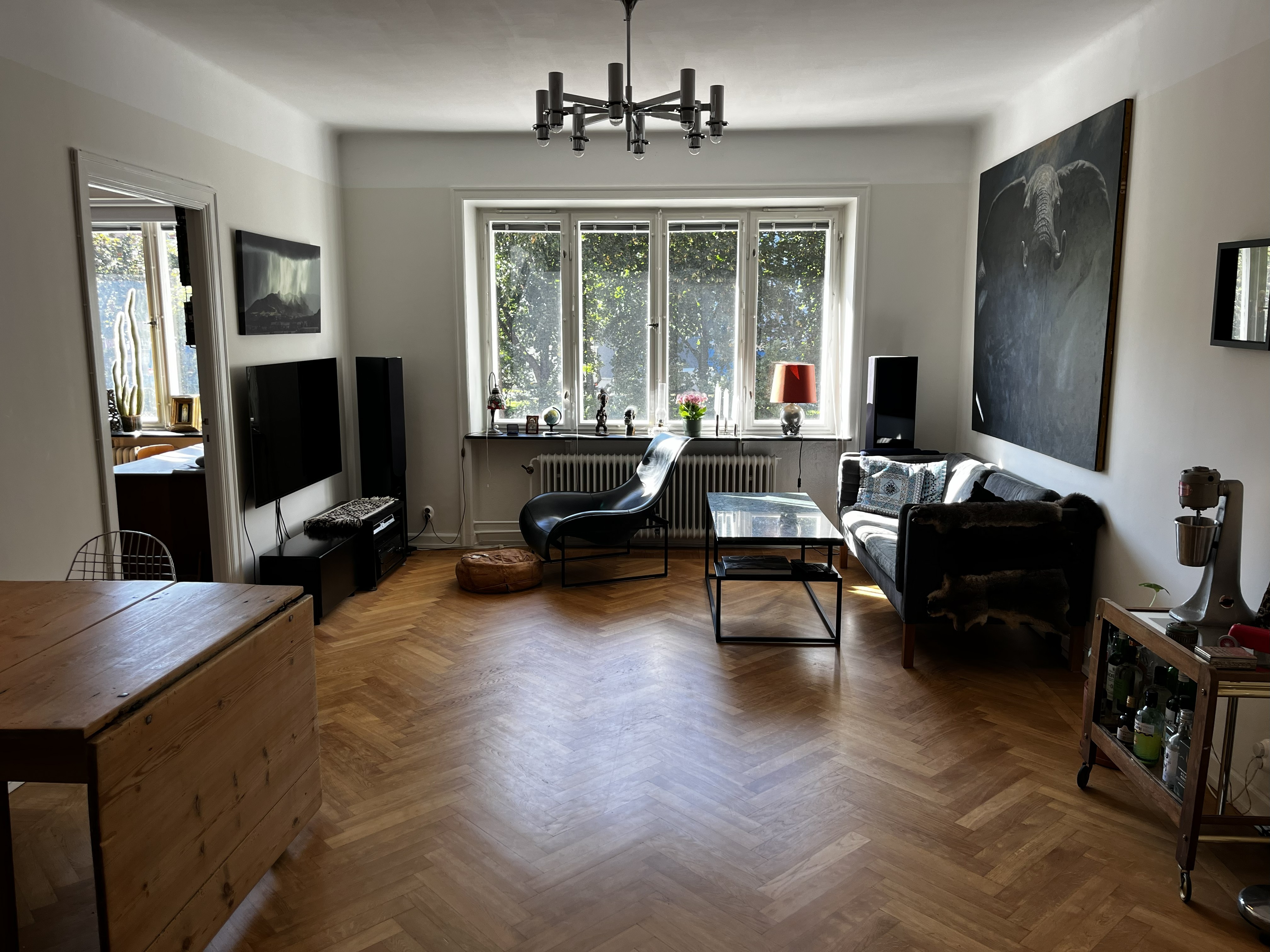 Smakfullt inredd, trevlig tidig funkislägenhet med mycket attraktivt läge där Östermalm möter Lärkstaden och Sibirien. Väldisponerad och representativ trea med öppen och luftig planlösning. Allt snyggt och i välvårdat skick. Tidstypiska fönster med stort ljusinsläpp från syd, insynsskyddat av allén. Generös och luftig sällskapsyta med matplats och öppen spis, perfekt för socialt umgänge. Snyggt välutrustat kök i vitt med gott om arbetsytor och förvaring. Rymligt sovrum med skrivbord, byrå och läsfåtölj samt mindre sovrum med skrivbord och läsfåtölj. Två större garderober (se planlösn). Helkaklat badrum med ny Hansgrohe dusch. Privat möblerad med bl.a. italiensk och dansk design. Inkl. bredband. Uthyres p.g.a. boende på annan ort.