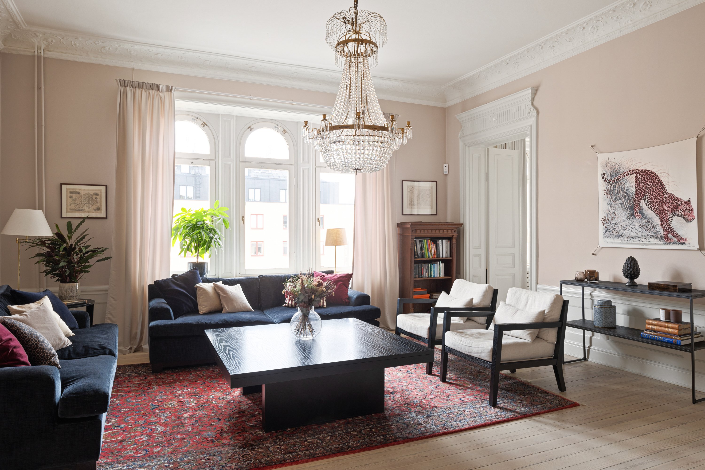 Välkommen till denna fantastiska och generöst tilltagna sekelskifteslägenhet om 124 kvm, belägen på eftertraktade Karlbergsvägen. Lägenheten ligger på fjärde våningen i en vacker byggnad med hiss och kombinerar klassisk elegans med modern funktionalitet. Exklusiva detaljer & rymlig planlösning Med en imponerande takhöjd på 3,3 meter och vackra stuckaturer bjuder bostaden på en luftig och storslagen känsla. De stora fönstren ger ett fantastiskt ljusinsläpp och förstärker ytterligare rymden i lägenheten. Lägenheten har tre rymliga sovrum och ett mindre rum, vilket gör den idealisk för en familj med 2–4 barn. Det stora vardagsrummet fungerar som bostadens sociala nav, inrett med två stora soffor och två fåtöljer – en inbjudande och elegant miljö. En 75-tums TV erbjuder underhållning i toppklass. Ett av sovrummen är även utrustat med en 65-tums TV. Det fullt utrustade Gaggenau-köket är en dröm för matlagningsentusiasten och erbjuder allt du kan tänkas behöva. Lägenheten sträcker sig genom hela huset och har gott om förvaring i generösa garderober. Två badrum & tvättmöjligheter Lägenheten har två badrum, en med dusch och ett mindre WC med tvättmaskin. Perfekt läge vid Odenplan Karlbergsvägen är en av Stockholms mest attraktiva adresser, och här bor du mitt i hjärtat av Vasastan och Odenplan. Allt finns inom räckhåll – trendiga kaféer, restauranger, butiker och utmärkta kommunikationer. Med Odenplans pendeltågsstation, tunnelbana och flera busslinjer tar du dig enkelt runt i hela Stockholm. Detta är en unik möjlighet att hyra en storslagen sekelskifteslägenhet i ett av Stockholms mest eftertraktade områden.
